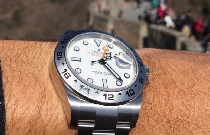 Of course, the Rolex Explorer II replica was never the issue during my Wall trek, but rather my knees and my feet walking and climbing this amazing structure. Of course, I was also carrying my DSLR camera and made sure to stop, take a breathe, and take some pictures of the vast landscape. The weather was clear, so the view went on for miles. The white face of the Rolex Explorer II was never out of place. And I was very happy to use the 5mm easy link extension to relieve my wrist after a hard day hiking under the sun.