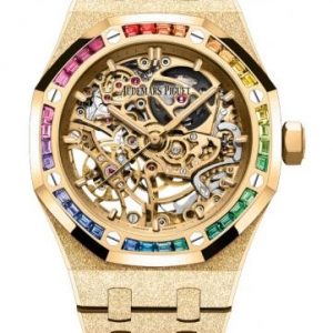 Copy Audemars Piguet Royal Oak 37 Double Balance Wheel Openworked Frosted Yellow Gold Rainbow watch 15468BA.YG.1259BA.01