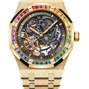 Copy Audemars Piguet Royal Oak 41 Double Balance Wheel Openworked Frosted Yellow Gold Rainbow watch 15412BA.YG.1224BA.01