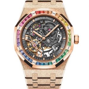Copy Audemars Piguet Royal Oak 41 Double Balance Wheel Openworked Frosted Pink Gold Rainbow watch 15412OR.YG.1224OR.01
