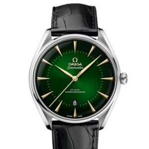 Replica Omega Seamaster Master Co-Axial 39.5 Macau Edition Stainless Steel Green Alligator Watch 511.13.40.20.10.001