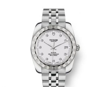 Tudor Classic Date Watch Replica 38 mm steel case White diamond-set dial m21010-0015