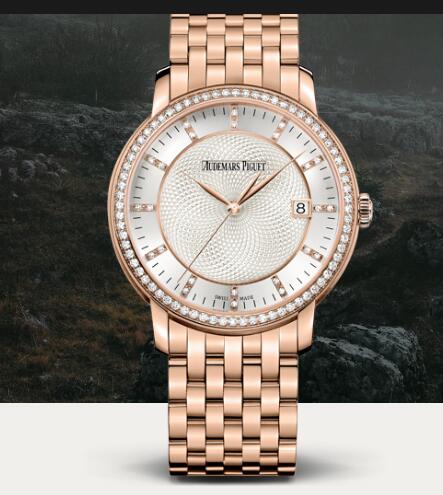 18-carat pink gold case, glareproofed sapphire crystal and caseback, diamond-set bezel