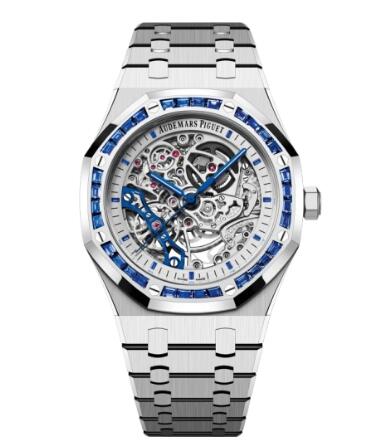 Audemars Piguet Royal Oak 41 Double Balance Wheel Openworked White Gold Baguette Blue Sapphire Replica Watch 15412BC.SS.1220BC.02