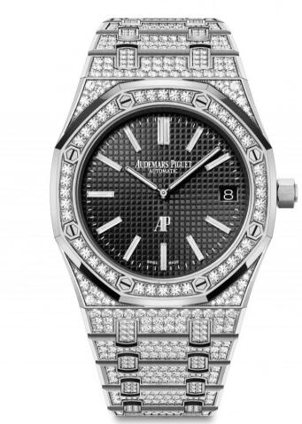 Audemars Piguet Royal Oak Extra-Thin White Gold Diamond Black Replica Watch 15202BC.ZZ.1241BC.03