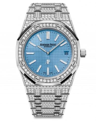 Audemars Piguet Royal Oak Extra-Thin White Gold Diamond Blue Replica Watch 15202BC.ZZ.1241BC.02
