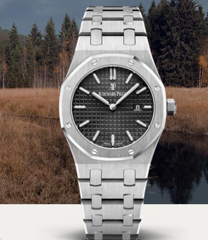 WATCH Ref #67650ST.OO.1261ST.01 CASE Stainless steel case, glareproofed sapphire crystal, water-resistant to 50 m. CASE SIZE 33 mm WATER RESISTANCE 50 m CASE THICKNESS 7 mm DIAL Black dial with “Grande Tapisserie” pattern, white gold applied hour-markers and Royal Oak hands with luminescent coating. BRACELET Stainless steel bracelet with AP folding clasp.