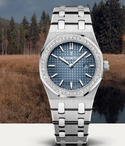 WATCH Ref #67651IP.ZZ.1261IP.01 CASE Titanium case, glareproofed sapphire crystal, diamond-set polished 950 platinum bezel and polished 950 platinum links. CASE SIZE 33 mm WATER RESISTANCE 50 m CASE THICKNESS 7 mm DIAL Smoked blue dial with “Grande Tapisserie” pattern, white gold applied hour-markers and Royal Oak hands with luminescent coating BRACELET Titanium bracelet with polished 950 platinum links and titanium AP folding clasp. SETTING 40 brilliant-cut diamonds; ~0.73 carats (bezel).