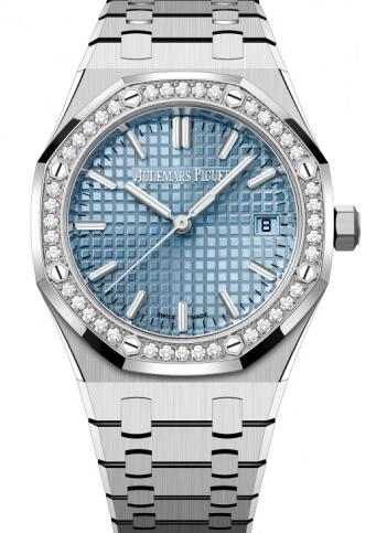 Audemars Piguet Royal Oak Selfwinding 34 Stainless Steel Diamond Ice Blue Bracelet 50th Anniversary Replica Watch 77451ST.ZZ.1361ST.01