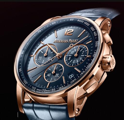 26393OR.OO.A321CR.01 – CODE 11.59 by Audemars Piguet Collection – Audemars Piguet The selfwinding chronograph’s deep blue lacquered dial offers a perfect mirror finish. The 18-carat pink gold case echoes the curved gold indexes and singular numeral at 12 o’clock.
