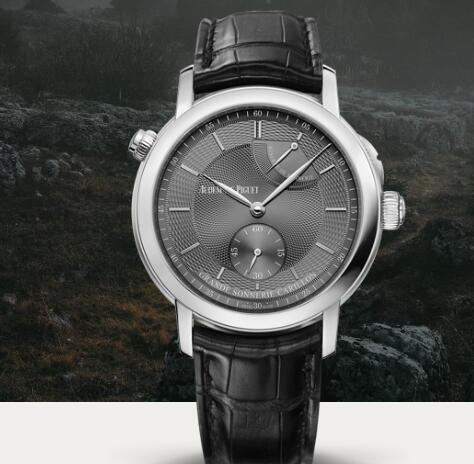 18-carat gold dial, slate grey, manufacture “guilloché” pattern, white gold applied hour-markers and hands.