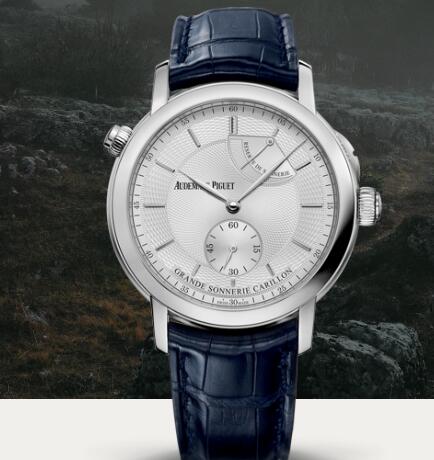 Hand-stitched “large square scale” blue alligator strap with 950 platinum AP folding clasp.