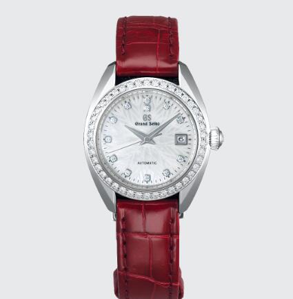 STGK003’s case is 18K white gold. 42 diamonds are set into each bezel and 12 into each mother-of-pearl dial. One more and larger diamond is set into the crown.