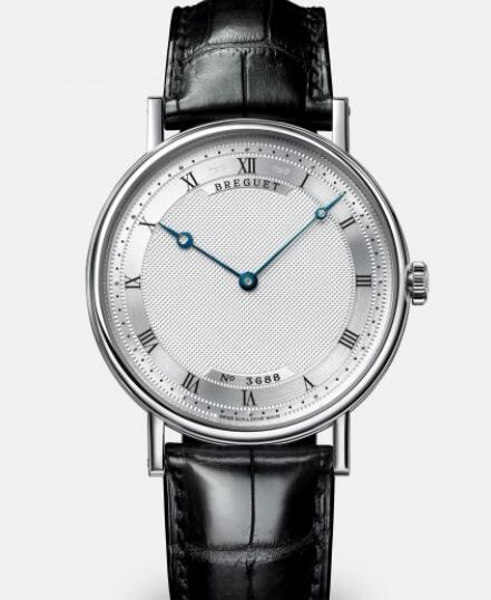 Extra-thin Classique wristwatch in 18-carat white gold. Self-winding movement. Balance spring and lever in silicon. Silvered gold dial, hand-engraved on a rose engine. Sapphire case back. Water-resistant to 3 bar ( 30 m ). Diameter : 38 mm. Also in yellow gold.