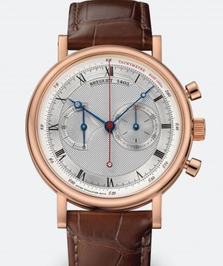 Classique chronograph in 18-carat rose gold. Hand-wound movement with double seconds and 30-minute totalizer. Tachometric scale surrounding the chapter ring. Silvered gold dial, hand-engraved on a rose engine. Sapphire case back. Water-resistant to 3 bar ( 30 m ). Diameter : 42.5 mm. Also in white gold. Available with Black rhodium-plated gold dial.