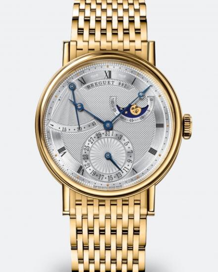 Classique wristwatch in 18-carat gold. Selfwinding extra-thin movement with date, power-reserve indicator and phases and age of the moon. Balance spring in silicon. Dial in gold, hand-engraved on a rose engine. Sapphire caseback. Water-resistant to 3 bar (30m). Diameter: 39 mm.