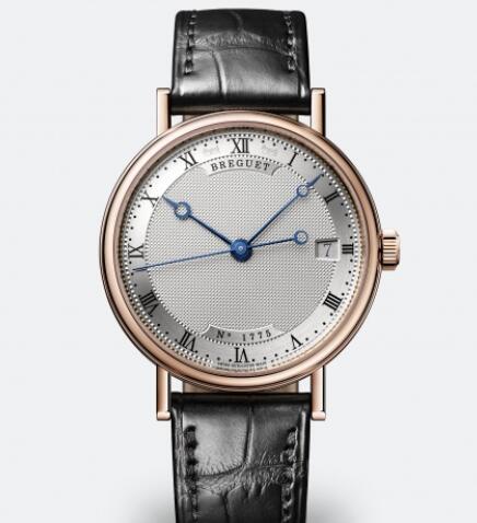 Classique wristwatch in 18-carat rose gold. Self-winding movement with date. Centre seconds hand. Swiss straight-line lever and balance-spring in silicon. Breguet balance-wheel. Silvered gold dial, hand-engraved on a rose engine. Diameter : 33.50 mm.