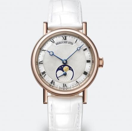 Dial individually numbered and signed Breguet. Hours chapter with Roman numerals. Moon-age and -phase indicator, plus small seconds at 6 o’clock. Breguet open-tipped hands in blued steel.