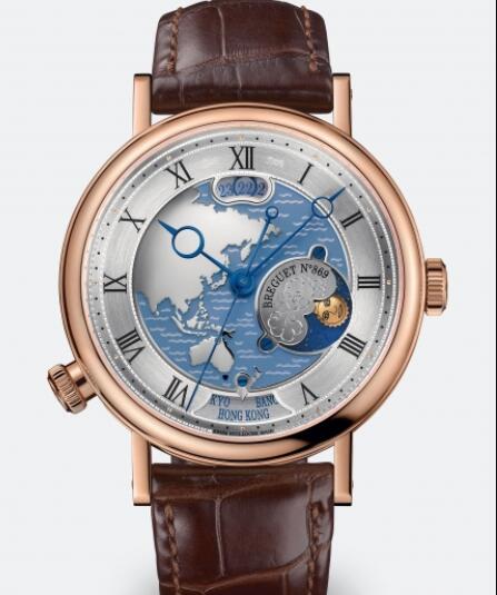Classique “Hora Mundi” wristwatch in platinum. Self-winding movement. Instant-jump time-zone display with synchronized date, day/night indication and city. Balance spring, lever and escape wheel in silicon. Gold dial depicting the American continent, hand-engraved on a rose engine with “wave” motif coated with translucent lacquer. Sapphire case back. Water-resistant to 3 bar ( 30 m ). Diameter : 43 mm. Also in rose gold. Available with Europe-Africa or Asia-Oceania dial.