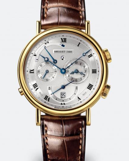 Le Réveil du Tsar. Classique alarm wristwatch in 18-carat yellow gold. Self-winding movement with seconds subdial and date. Second time-zone indicator. Alarm time and alarm power-reserve indicators. Alarm on/off indicator. Silvered gold dial, hand-engraved on a rose engine. Sapphire caseback. Water-resistant to 3 bar ( 30 m ). Diameter : 39 mm. Also in white gold. Available with gold bracelet.