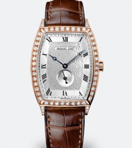 Héritage wristwatch in 18-carat rose gold. Curved tonneau-shaped case. Self-winding movement with running seconds. Bezel and lugs set with 56 diamonds, approx. 1.869 ct. Curved silvered gold dial, hand-engraved on a rose engine. Water-resistant to 3 bar ( 30 m ). Also in white gold. Dimensions : 35 x 29.60 mm.