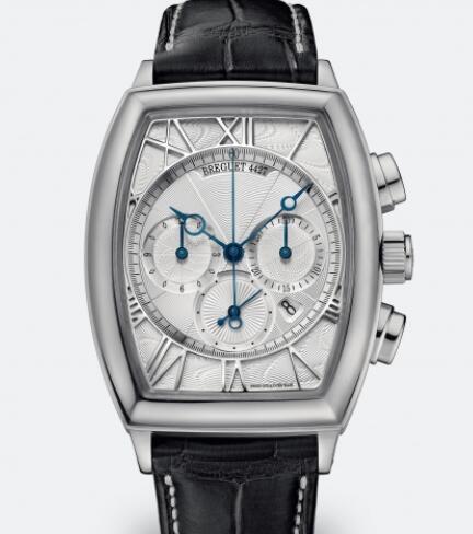 Héritage chronograph in 18-carat rose gold. Curved tonneau-shaped case. Self-winding movement with date and small seconds. 30-minute and 12-hour totalizers. Curved silvered gold dial, hand-engraved on a rose engine. Water-resistant to 3 bar ( 30 m ). Also in white gold. Dimensions : 42 x 35 mm.