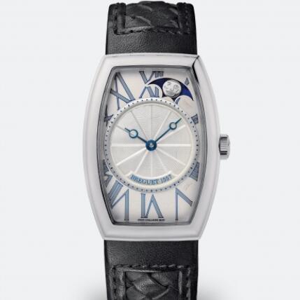 Héritage wristwatch in 18-carat rose gold. Curved tonneau-shaped case. Self-winding movement. Retrograde moon-phase indicator. Balance-spring in silicon. Cambered frosted silvered and natural mother-of-pearl dial, hand-engraved on a rose engine. Water-resistant to 3 bar ( 30 m ). Also in white gold. Available on gold bracelet. Dimensions : 35 x 25 mm.
