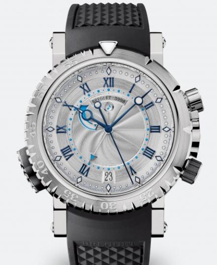 Marine Royale alarm wristwatch in 18-carat rose gold. Self-winding movement with date. Alarm power-reserve indicator. Self-winding alarm on/off indicator. Rose-gilded gold dial, hand-engraved on a rose engine. Sapphire caseback. Screw-locked crown. Water-resistant to 30 bar ( 300 m ). Diameter : 45 mm. Available with gold bracelet