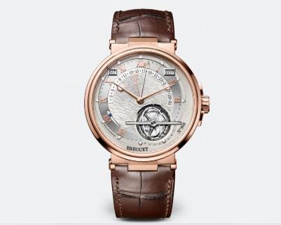 Marine “Grande Complication” wristwatch with running equation of time, perpetual calendar and tourbillon. Self-winding movement. Balance spring in silicon. Day, retrograde date, month and leap year indications. Power-reserve indicator. Solar minutes hand with a facetted golden sun. Tourbillon carriage in titanium. Small seconds and equation cam on the tourbillon shaft. Dial in gold, hand-engraved on a rose engine. Sapphire caseback. Water-resistant to 10 bar (100m). Diameter: 43.9mm