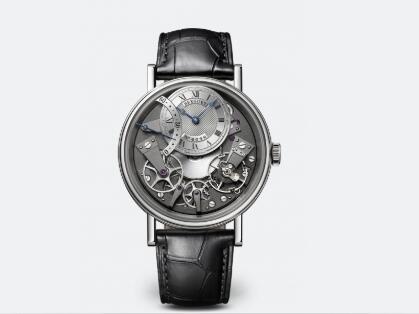 Tradition watch in 18-carat gold. Self-winding anthracite movement with retrograde seconds. Silicon Breguet balance-spring. Off-centred dial in silvered gold, engine-turned by hand. Sapphire crystal case back. Water-resistant to 3 bar (30 m). Diameter: 40 mm.