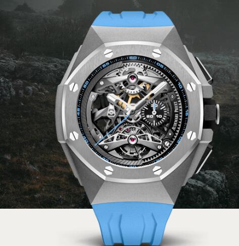 Blue rubber strap with titanium AP folding clasp. Additional black rubber strap.