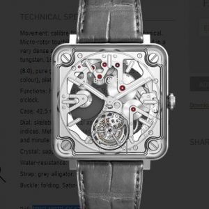 Movement: calibre BR-CAL.313. Automatic mechanical. ‘X’-shaped upper bridge. 56 jewels, 28,800 vph. Skeleton chronograph.