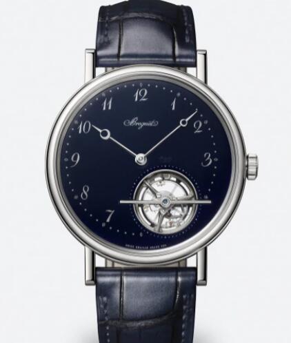 Blue “gand feu” enamel dial with Breguet Arabic numerals and secret signature. Sapphire caseback. Water-resistant to 3 bar (30m). Diameter: 41mm.