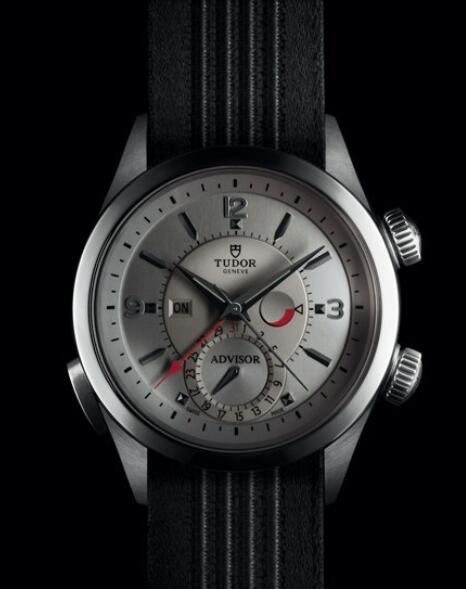 | Case peculiarity : | Smooth steel bezel Steel pusher at 8 o’clock to activate the alarm function Steel winding crown at 2 o’clock for the alarm function engraved with ADVISOR Steel winding crown at 4 o’clock engraved with the TUDOR rose |