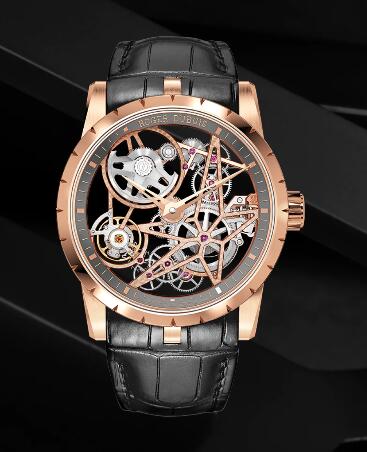 Roger Dubuis Excalibur Automatic Skeleton Golden RDDBEX0698 Replica Watch Rose gold Black