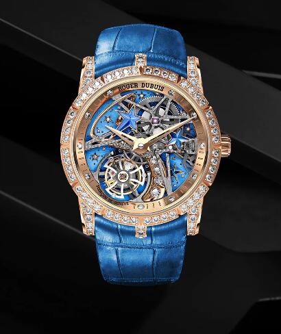 Roger Dubuis Excalibur Shooting Star Flying tourbillon RDDBEX0761 Replica Watch Rose gold Blue