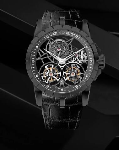 Roger Dubuis Excalibur Skeleton double flying tourbillon RDDBEX0471 Replica Watch Titanium Flying tourbillon
