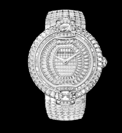 Size : 38mmWater Resistance : 3 BAR (30m)DialFully paved with baguette-cut and emeralds-cut diamonds Roger Dubuis logo metallised on the sapphire-crystal glass