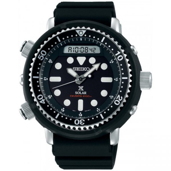 More details: bolted caseback, one-sided rotating bezel, screw-down crown and pushers